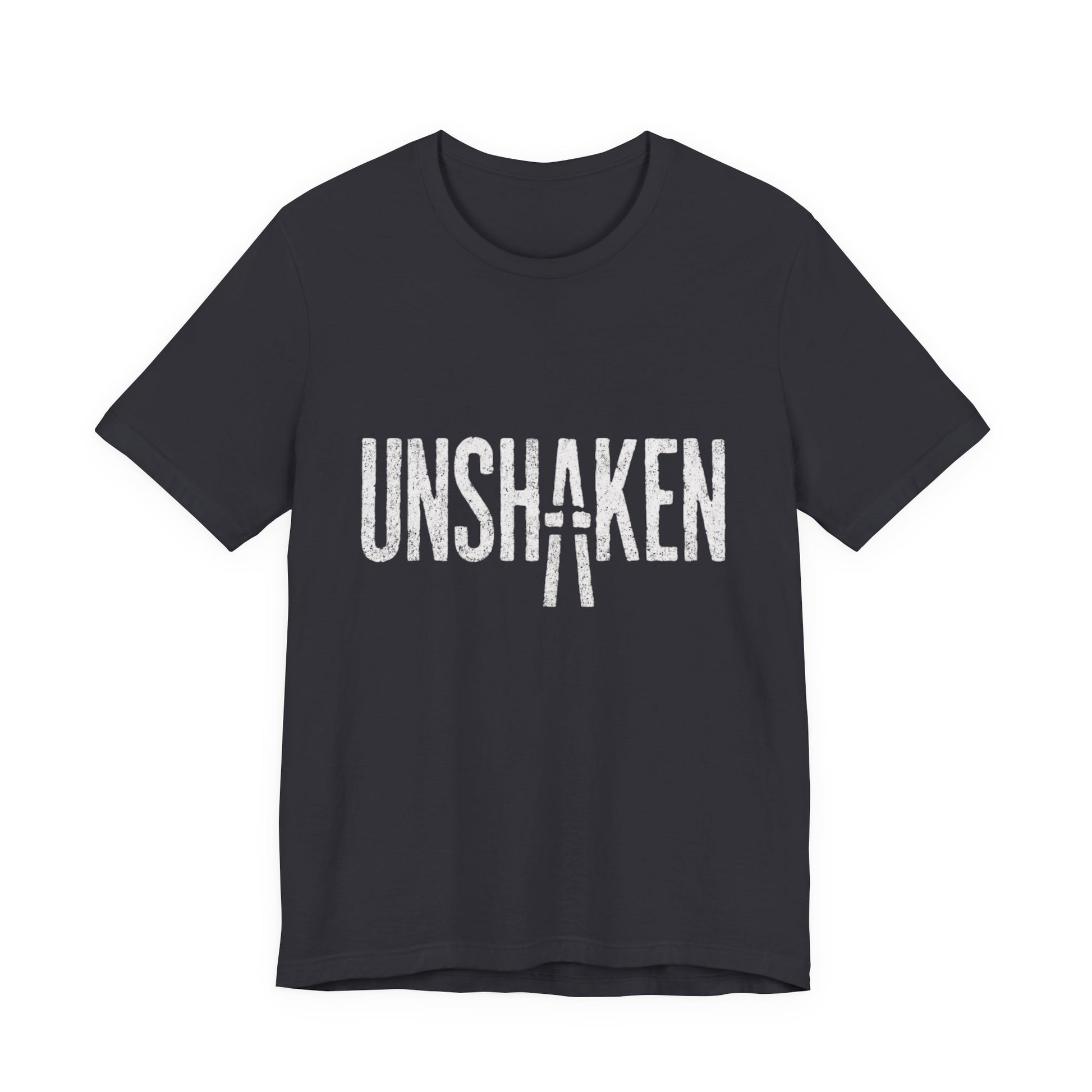 Stand firm, no matter the storm. The “Unshaken” tee is a bold reminder to stay grounded, resilient, and unmovable, having grit, faith, and strength.